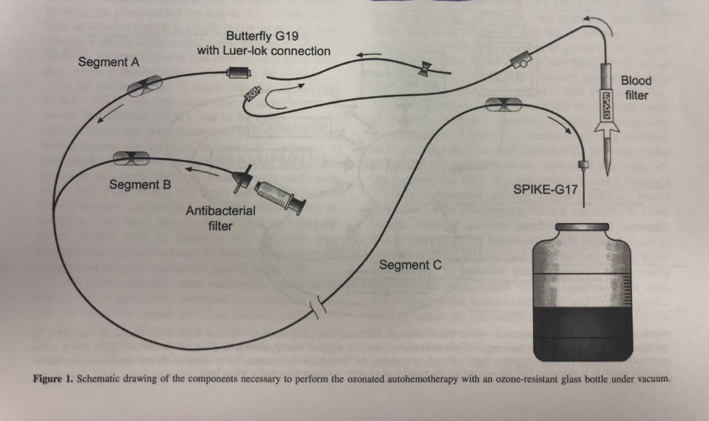 100-150 ml of blood is taken from the arm vein of the patient and gassed with proper amount of ozonated oxygen mixture according the illness. And reinfused as a drip infusion . This method is the main immuno modulatory procedure